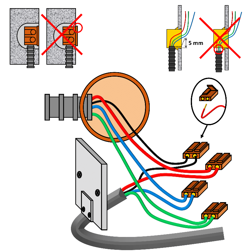 Il est interdit de positionner une sortie de câble à moins de 5 cm du sol fini.